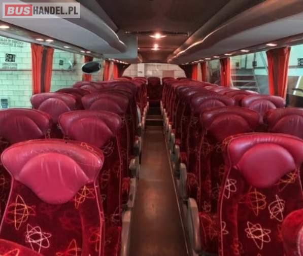 Wyposażenie: video, WC, lodówka, fotele odchylane, oświetlenie indywidualne, nawiewy dyszowe, ABS, ASR, tempomat, retarder, mikrofon, klimatyzacja, radio, regulacja wysokości nadwozia, podwójne szyby boczne, wspomaganie kierownicy, elektryczne lusterka